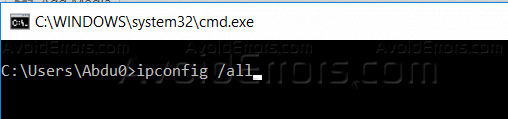 7. Use the command “ipconfig /all” to check your new MAC address.