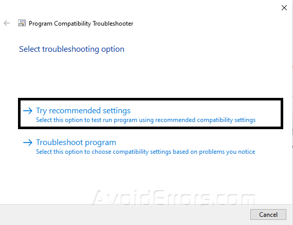 Unselect the checkbox “Run this program in compatibility mode for:”