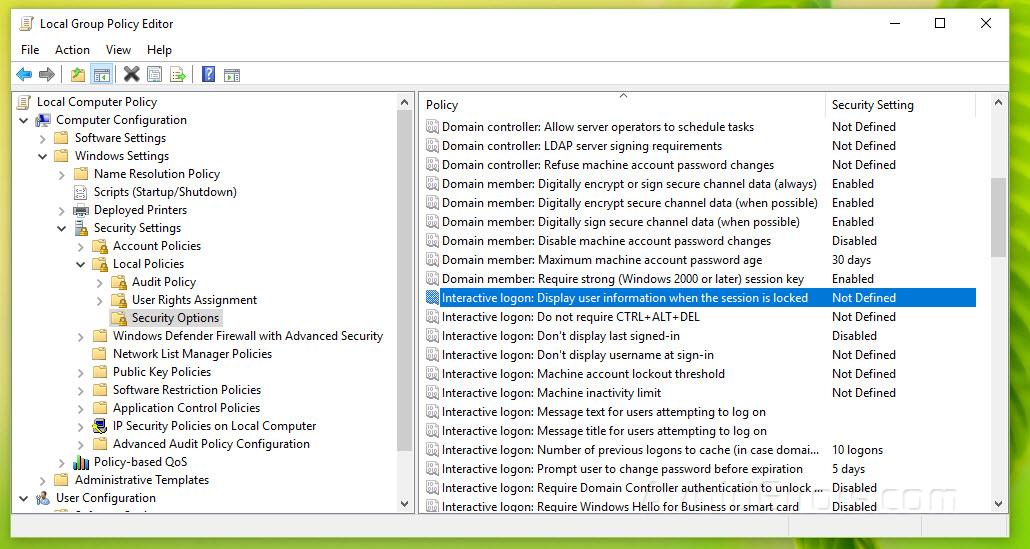 Select the policy “Interactive logon: Display user information when the session is locked”.