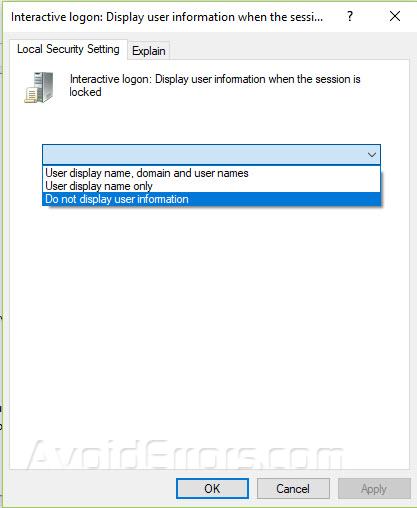 A drop-down menu will be there, select the option “Do not display user information.”