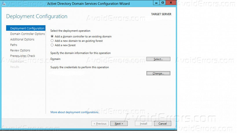 A new windows wizard “Active directory domain services configuration wizard” will be opened.