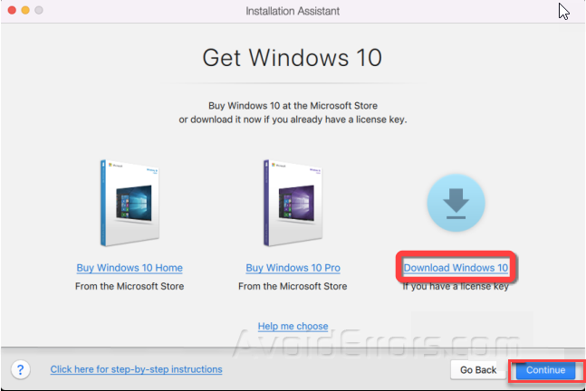 Next, Choose “Download Windows 10” and click “Continue.”