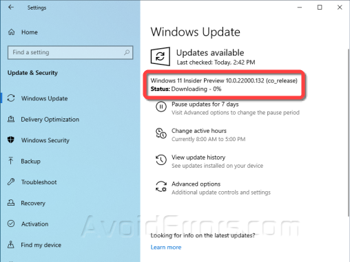 Reboot the Windows 10 Virtual Machine and open the Windows Update to retrieve fresh updates when you are done. The downloading process of the Windows 11 Insider Preview build should begin instantly.