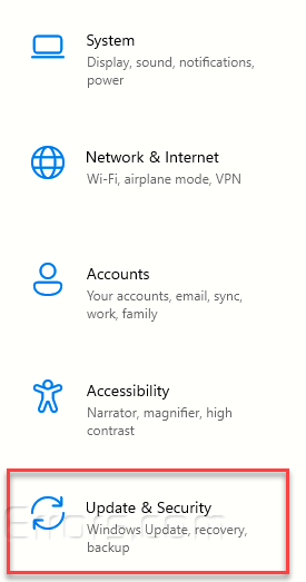 Once you get to the Windows Settings, scroll down a bit and select “Update & Security.”