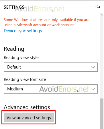 Scroll down to the bottom of the Settings pane and click the “View advanced settings” button.