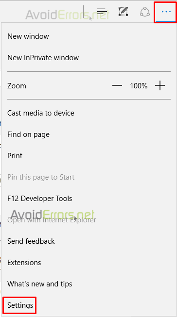 In Microsoft Edge on Windows 10, click menu -> Settings.